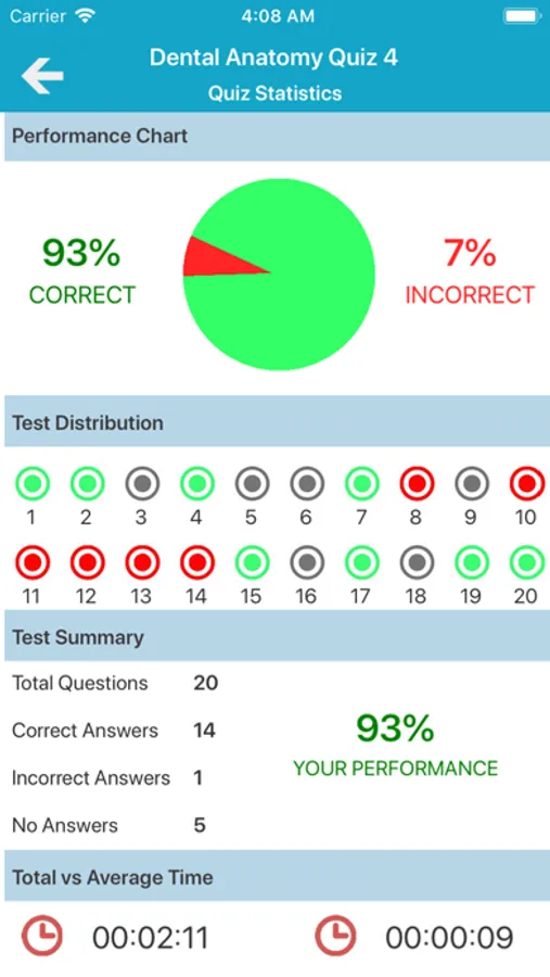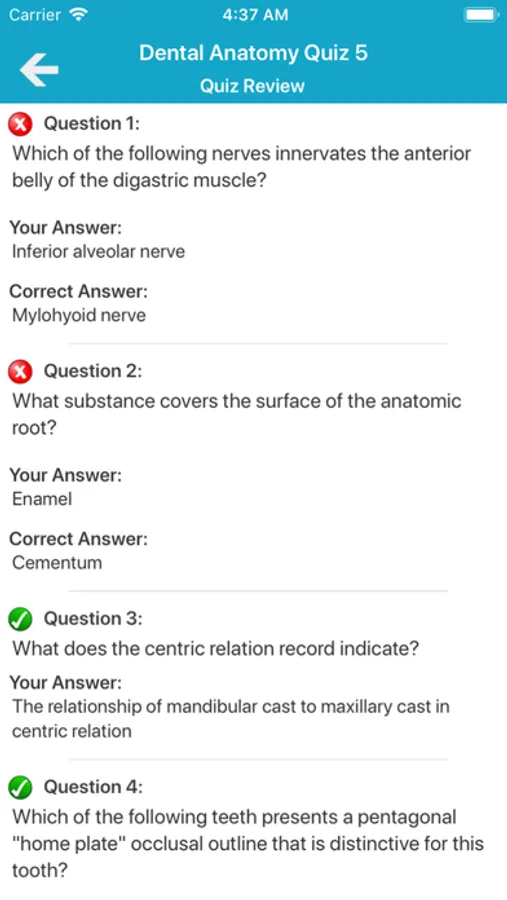 - Shows your quiz history with your answer and correct answer anytime.