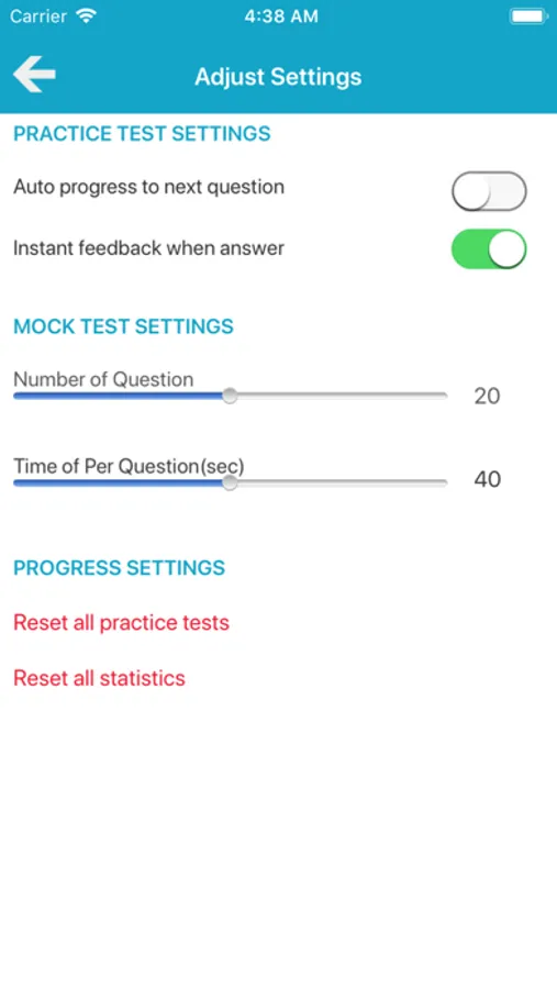 In Mock Exam that questions randomized each time of all topics. You can set question count and exam time for exam simulator using settings.