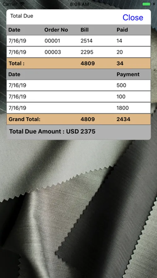 This app covers all the activities related to the order received from customer. It has features for Sales Representative to take order, input measurement. Master tailor will be able to check order, measurement and template to approve the order. Once the order is approved then production agent can receive, make and send to head quarter. Shipping staff then receives the product and send to customer through courier.