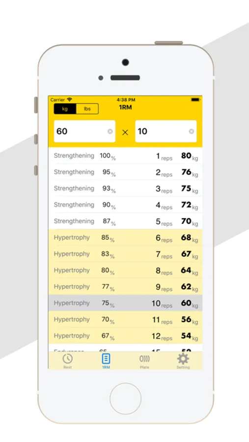 If you tap the 1RM tag, enter 60 for weight and 10 for reps.