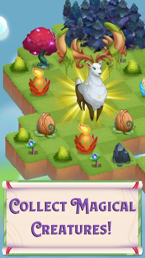 Merge eggs to hatch magical creatures, then evolve them to uncover more powerful ones! Encounter and solve challenging puzzle levels: match the items to win, then bring rewards back to your Garden to collect and grow.