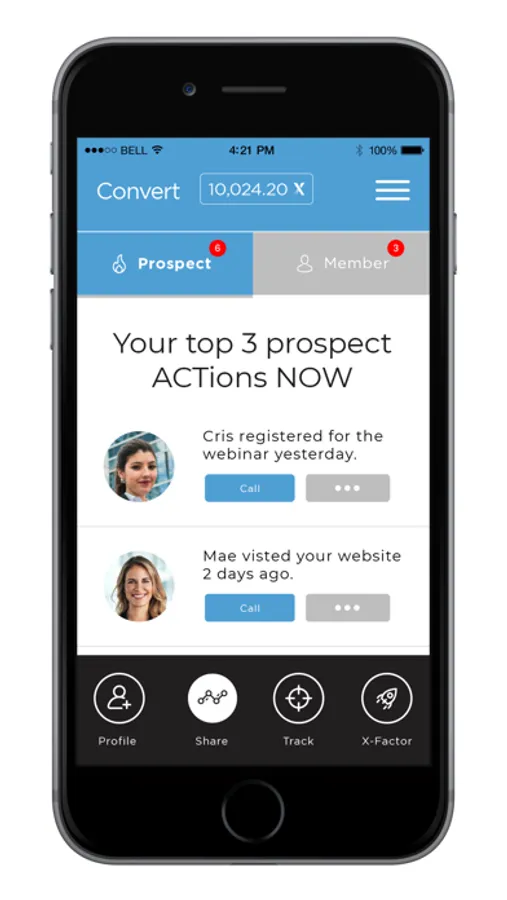 The application tracks all of your invitations to contacts and their response back telling you your next followup step and any time and giving you 'suggested text' we call 'predictive actions' to follow up with each person you're sharing your business with.