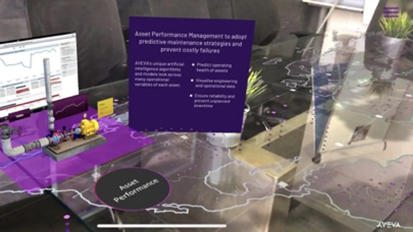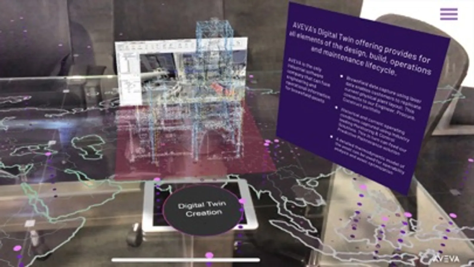 AVEVA’s augmented reality app is a virtual walkthrough of the AVEVA portfolio. Download to explore AVEVA’s solutions for: Asset Performance; Engineer, Procure, Construct; Monitoring and Control; Operate and Optimize, Training and Simulation; Digital Twin creation.