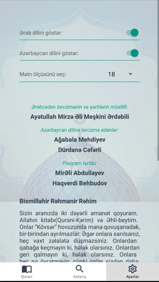 İstifadənizdə olan bu proqram, Qurani-Kərimin dilimizə olan ən gözəl tərcümə və şərhinin elektron versiyasıdır.