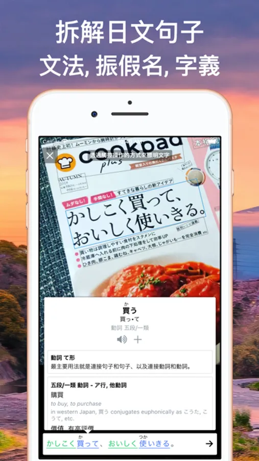 1. 拆解日文句子:由圖片、聲音或文字,拆解當中的文法、振假名和字義。