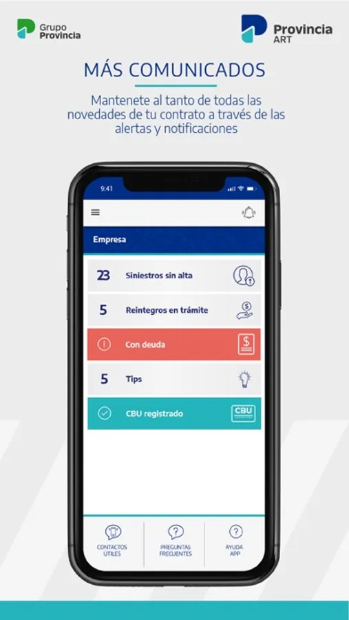 Llevá la información de tu contrato en tu mano y mantenete al día con todas las novedades de nuestros servicios. Entre otros beneficios, podés tramitar los reintegros por incapacidad laboral temporaria, agilizando las liquidaciones y teniendo un control acerca de los siniestros denunciados, emitir certificados de cobertura; y recibir alertas y notificaciones sobre tu cuenta.