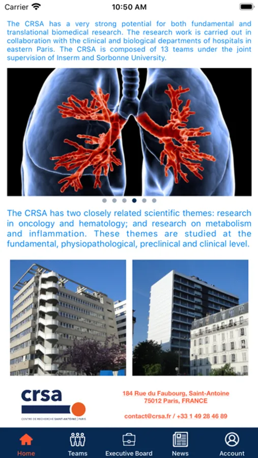 The Centre de Recherche Saint-Antoine (CRSA) has a very strong potential for both fundamental and translational biomedical research. The research work is carried out in collaboration with the clinical and biological departments of hospitals in eastern Paris.