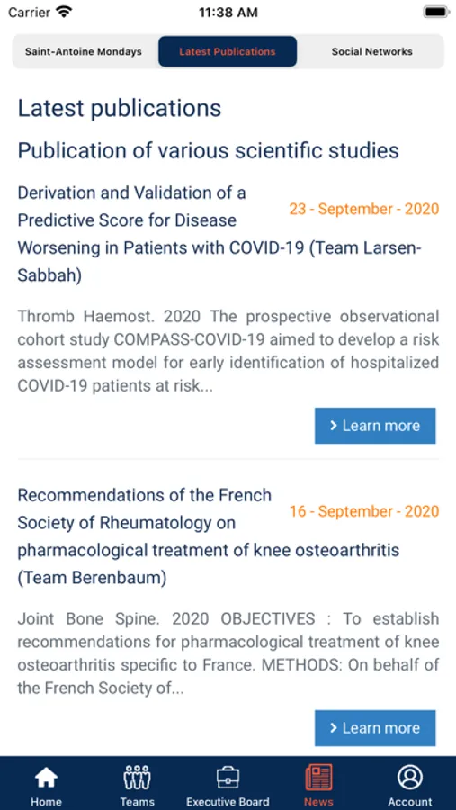 - The latest articles on social networks (Facebook, Twitter, Instagram and LinkedIn)