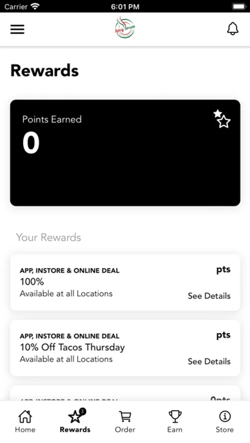Spicy Streats Rewards App: Check-in with the app at the in-store tablet, check your rewards and more!