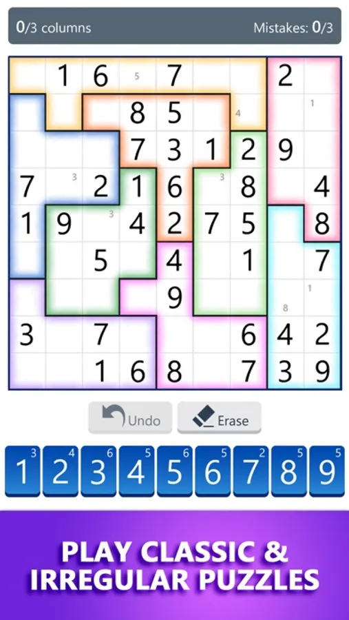 • Freshly generated puzzles every game across 6 levels of difficulty for Classic and Irregular Sudoku