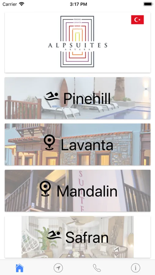 Alpsuites ailesi olarak misafirlerimize 2015 yılından buyana 4 tesiste bulunan, 30 dairemizle kaliteli ve nitelikli hizmet vermeyi arzuluyoruz. Geçen sezon hayata geçirdiğimiz projemiz Pinehill'de 16 daireye, yüzme havuzu, yoga ve dinlenme alanları eşlik ediyor. Grubumuzun en genç üyesi Safran, Akyaka'nın en tarihi ve en prestijli bölgesi olan İniş dibinde sırtını çam ormanlarına dayarken, size Gökova körfezinin eşsiz manzarasını sunuyor. Yüzerken bile Gökova ovasını ve müthiş deniz manzarasının tadını çıkartabileceğiniz bu tesisimizde 3 adet daire bulunmakta. Akyaka'yı merkezde yaşamak isteyen misafirlerimiz için Lavanta ve Mandalin'i denemelerini tavsiye ediyoruz.
