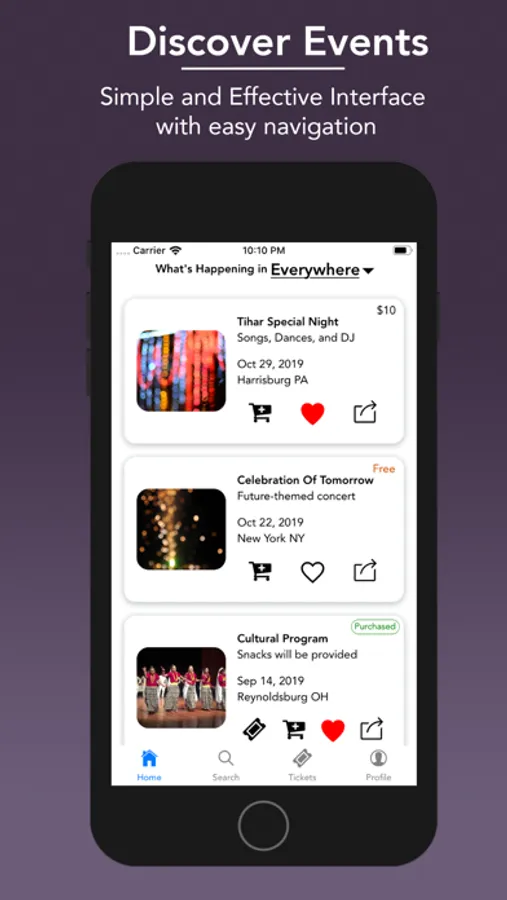 Favorite Events: You can set events as favorite, so you always have the events that you love - one tap away.
