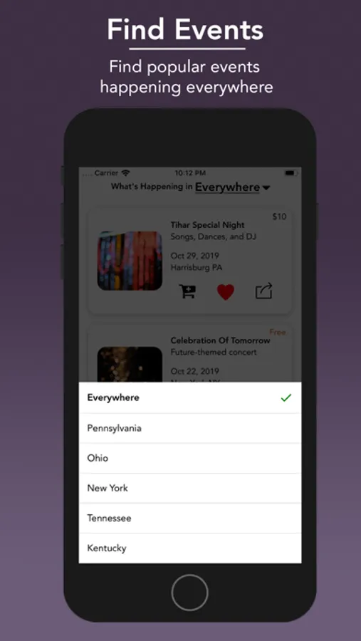 Discover Events: Discover popular events happening near you or the next place you are visiting next weekend.