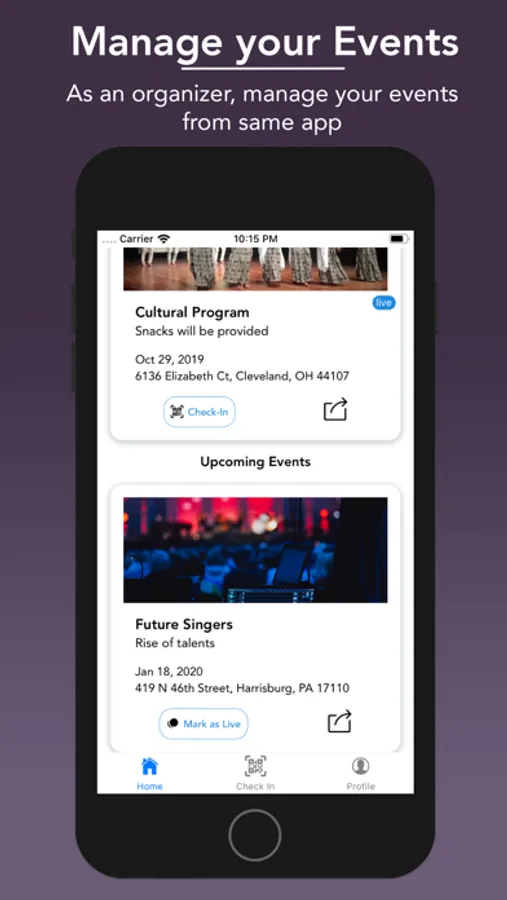 Simple and Effective Interface: You don’t have to download separate app as an organizer. You can simply check “Login as Organizer” button in login page to use as organizer.