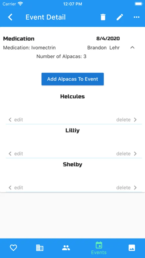 - Events - (shearing, medication, etc.)