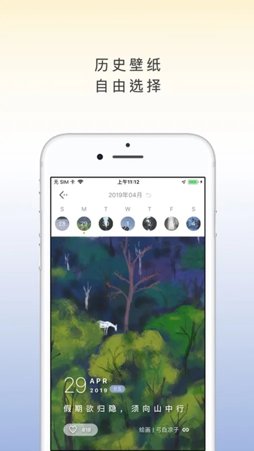 这里是一个插画、摄影组成的文艺范儿壁纸App,每天的内容都是由主理人(微博:@周末野Moor)原创的绘画作品或者摄影作品。