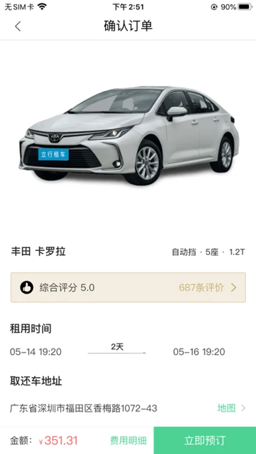 APP一键预定,车型分类,价格排序,一目了然,随时随地在线轻松下单。