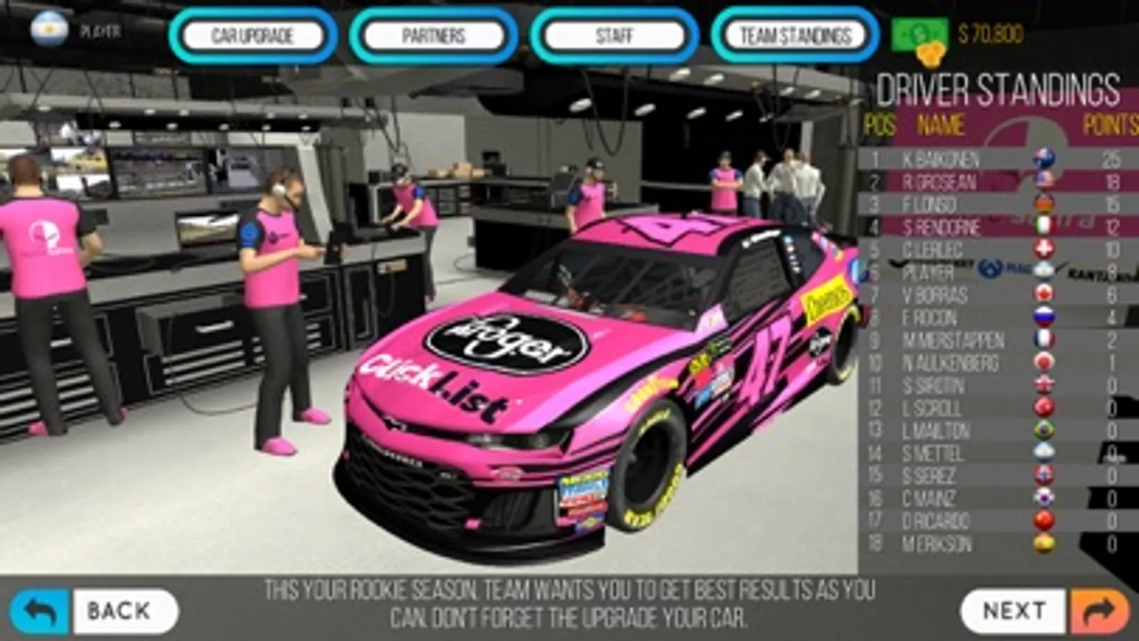 - Can control the all racing team features like Sponsor, Payments, Staff, Mechanics.