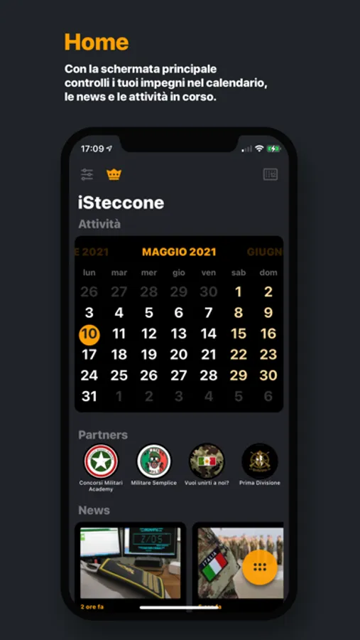 Con una interfaccia semplice e intuitiva suddivisa in sezioni, puoi visualizzare tutte le informazioni più importanti già dalla schermata principale grazie al calendario, dove verranno mostrati tutti gli impegni lavorativi, le news più importanti del mondo militare, i promemoria e le attività in corso.
