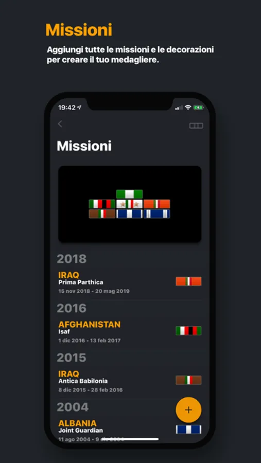 Inserisci tutte le tue missioni e le decorazioni, per creare il tuo medagliere.