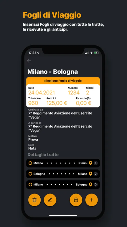 Inserisci i tuoi fogli di viaggio con le tratte, le ricevute e gli anticipi percepiti.