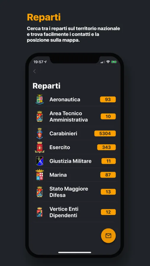 Trova sulla mappa tutti i reparti disponibili nel territorio nazionale, visualizza lo stemma araldico e le informazioni sul reparto o calcola il percorso.