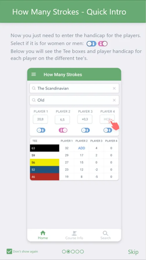 - Decide your Tee box on the first Tee without having to check the Handicap Table in the Clubhouse.