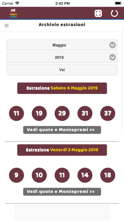 Visualizza tutte le estrazioni del gioco Vinci Casa !