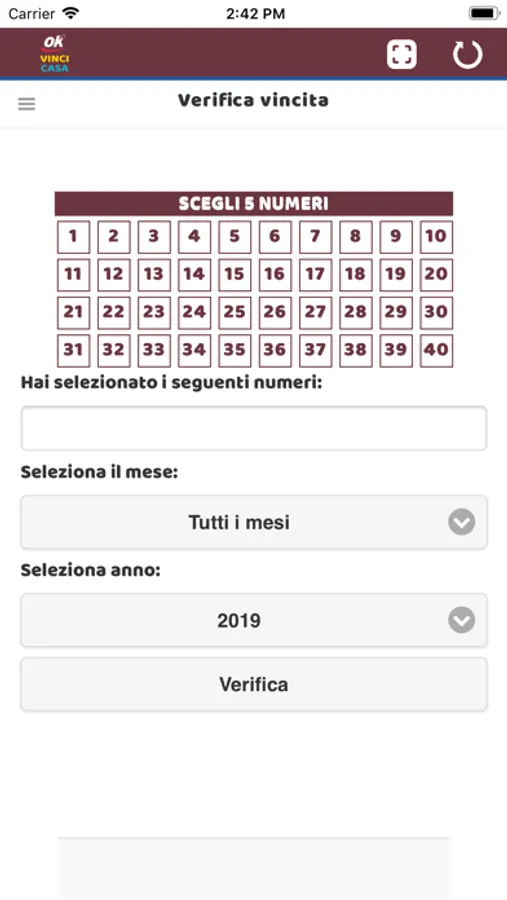 Seleziona 5 numeri e la data e poi verifica quante volte sono stati estratti i numeri.