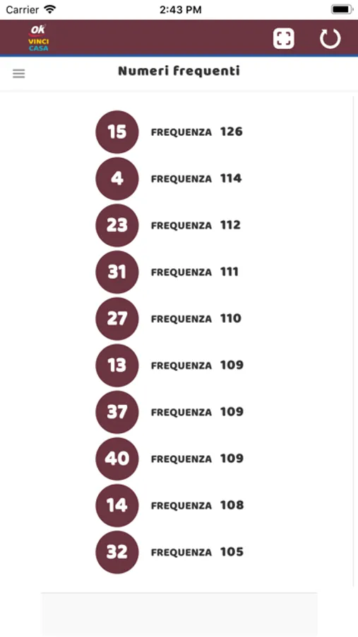 Visualizza tutti i numeri frequenti delle estrazioni VinciCasa !