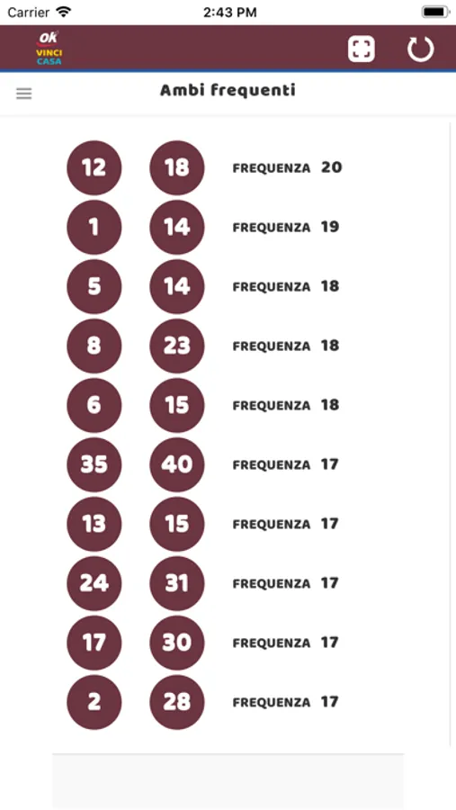 Visualizza tutti gli ambi frequenti delle estrazioni VinciCasa!