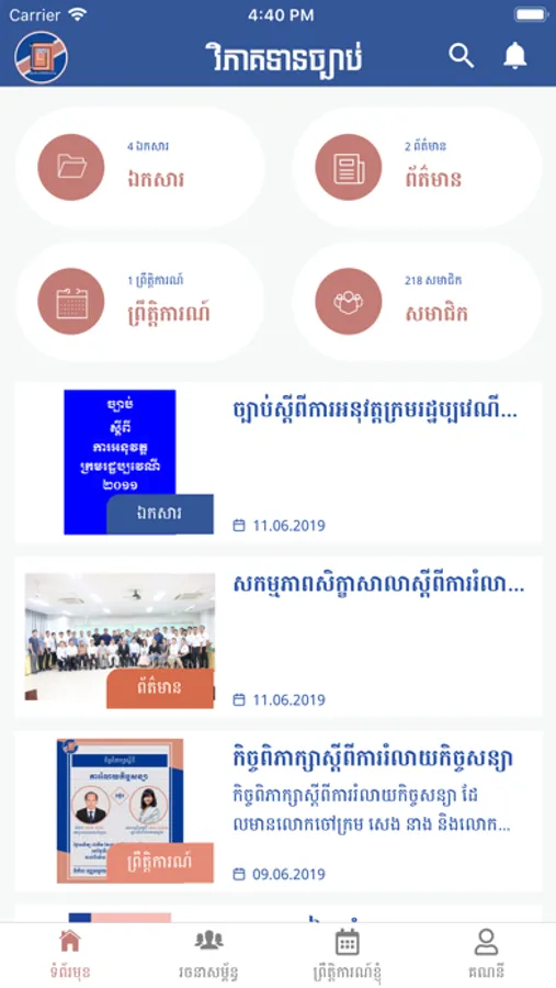 The app is a newly developed one for sharing documents, news and events, related to Cambodia Civil Code and Code of Civil Procedure, which are organized by Contribution of Law. Contribution of Law is a for non-profit program established in 2015 by Ms. TEP Bophal, Attorney at Law. The purpose of creating such program is to widen the knowledge related to Civil Code and Code of Civil Procedure to public through training courses (both long term and short term courses), seminars, documents and so on.