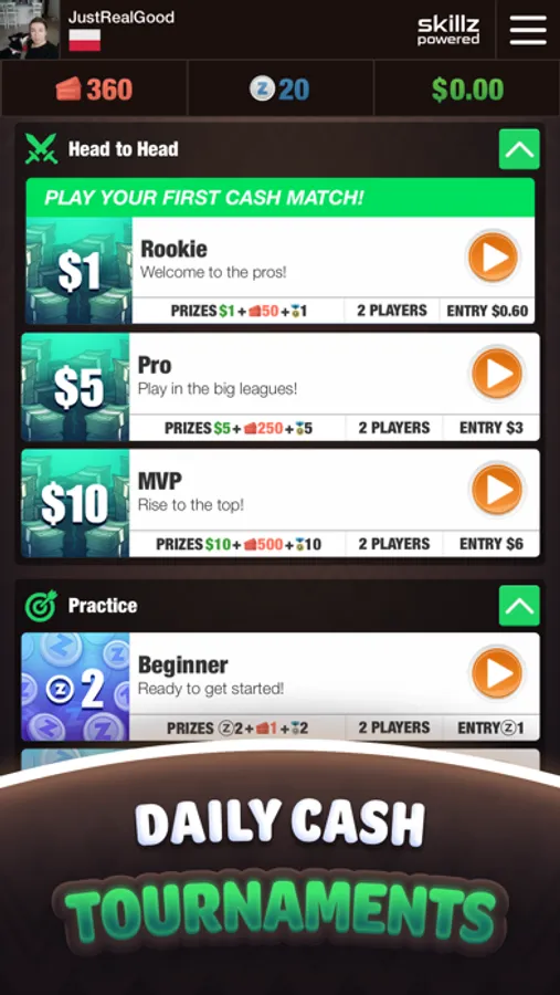 Challenge people around the world with SKILLZ, a competition platform complete with leaderboards, trophies, cash or virtual currency prizes, and an amazing loyalty program that rewards you just for playing! SKILLZ: eSports for Everyone.