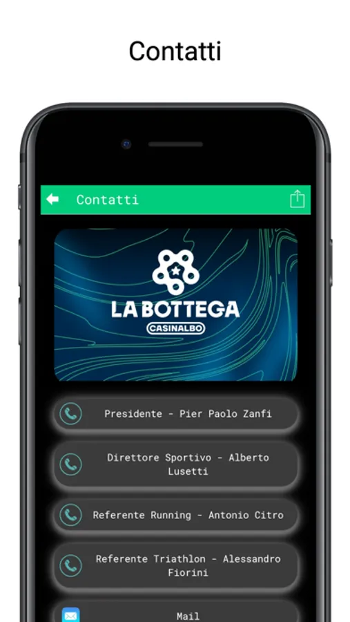 Tramite la nostra app personalizzata i nostri associati possono vedere tutte le nostre ultime novità sulle gare e sugli eventi sportivi che organizziamo e possono decidere il tipo di abbigliamento sportivo che adotteremo e possono ricevere le notifiche sugli aggiornamenti regolamentari e delle attività della nostra società sportiva