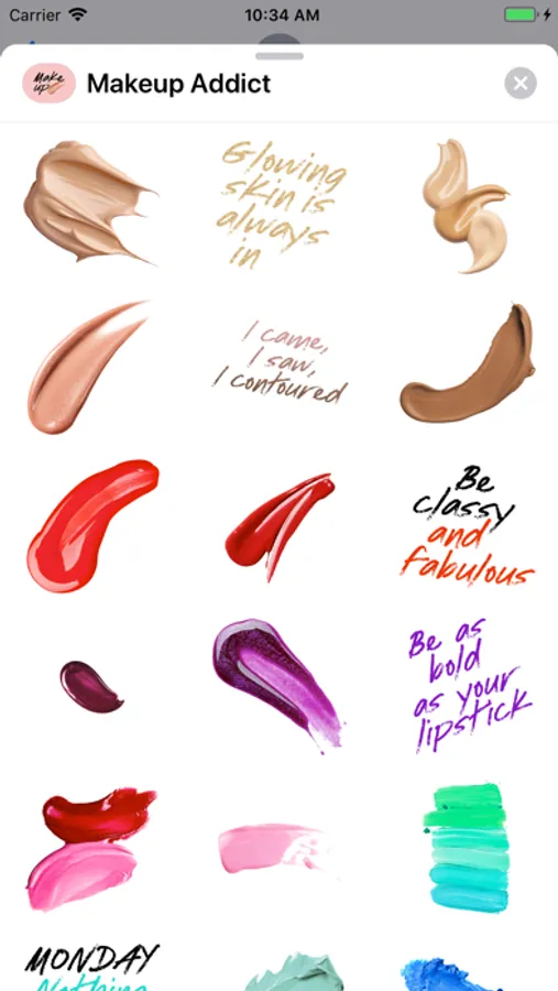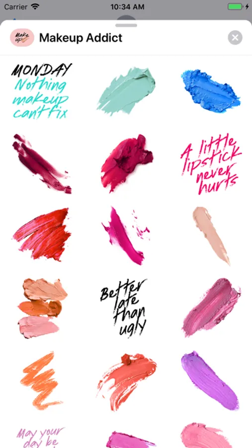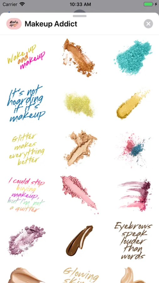Instantly get your beauty fix with bright makeup quotes and gorgeous cosmetics swatches stickers for Messages and FaceTime!