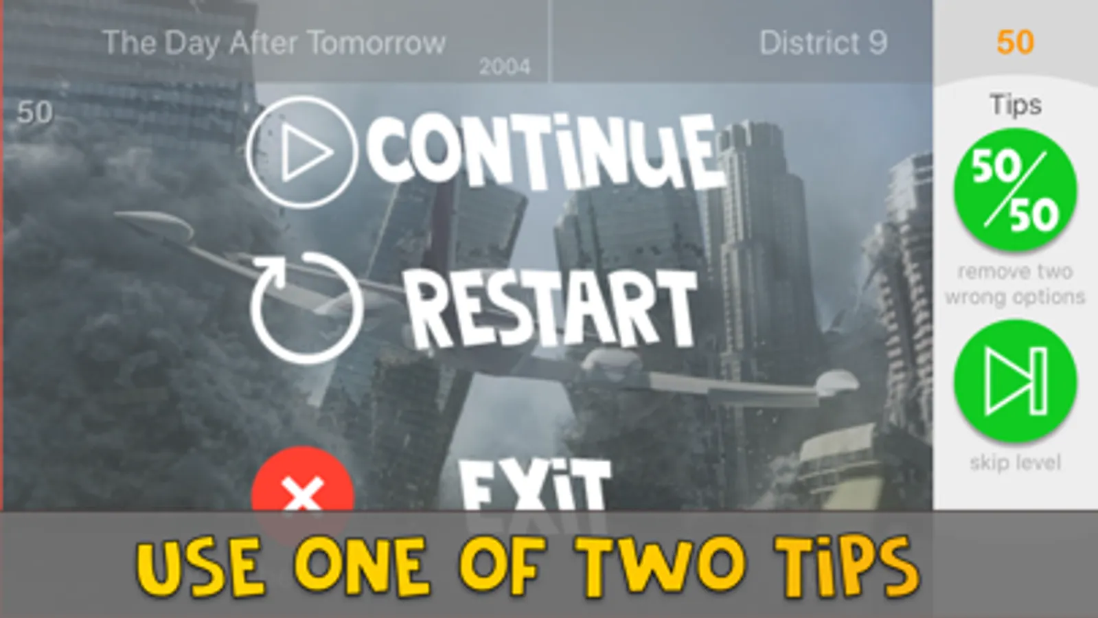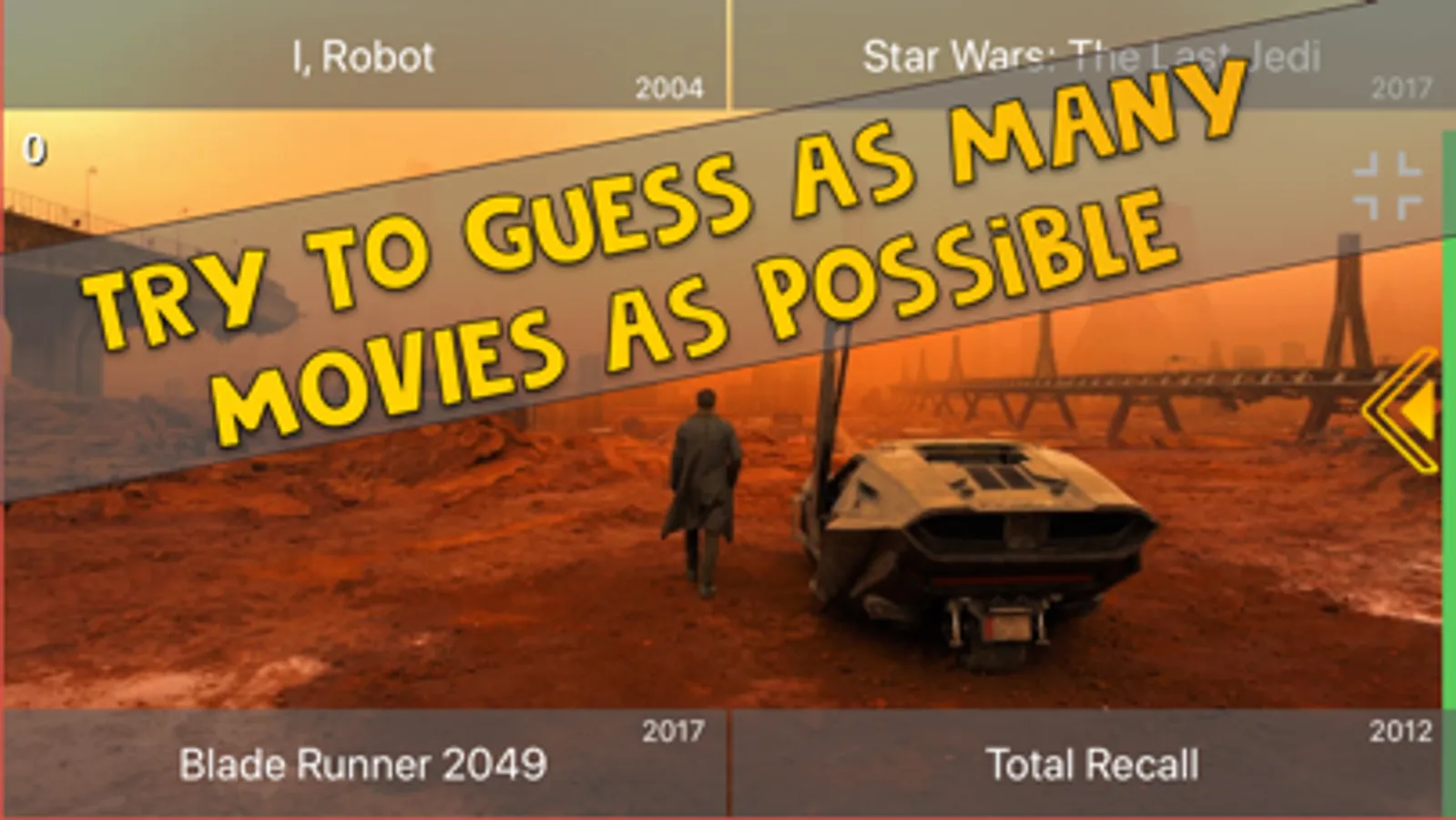 Guess the Movie is a mobile game that challenges players to guess the name of a movie based on a picture from the film. The game boasts a large, constantly updated database of more than 1000 films, ensuring endless hours of entertainment. In each round, players are presented with four answer options and must choose the correct one to advance to the next level. To help players along the way, the game includes two helpful hints: the 50/50 hint, which eliminates two incorrect answers, and the "Skip" hint, which allows players to move on to the next question without penalty. With two different game modes, and a vast, ever-growing selection of films to guess from, game is the perfect for movie buffs and casual players alike. And for those who love a good competition, the game features a leaderboard where players can see where they stand among friends and other players and try to take first place.