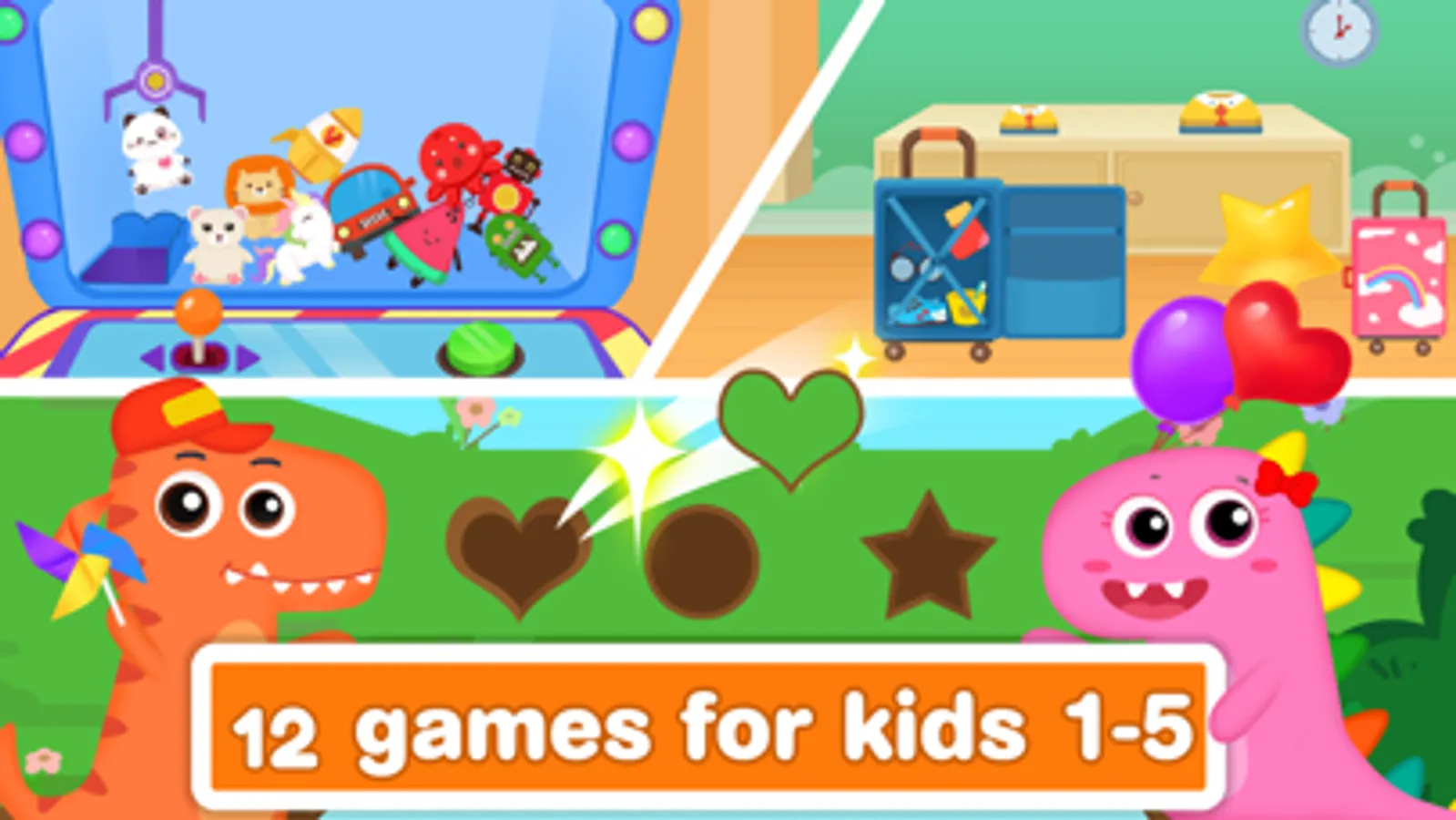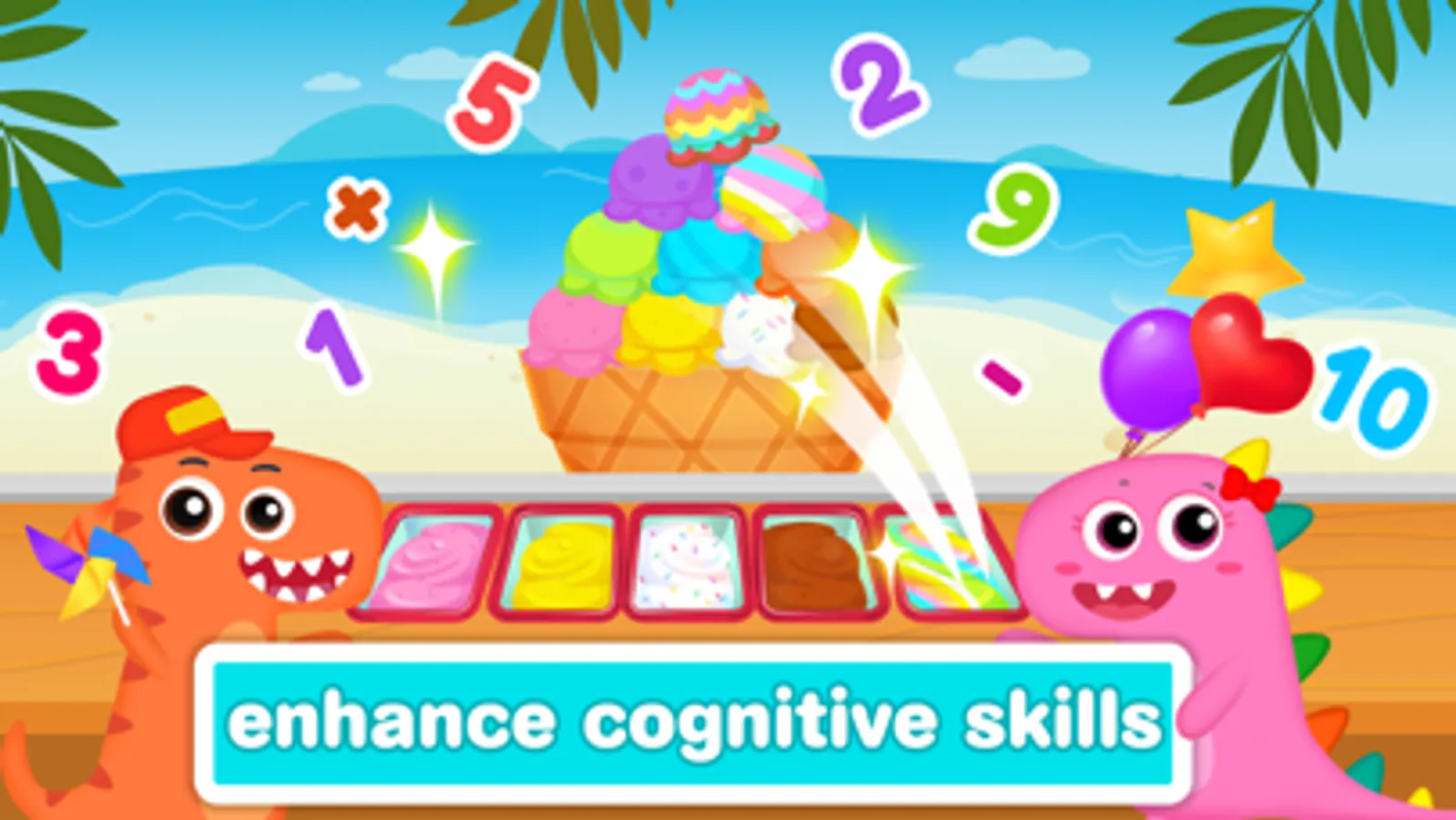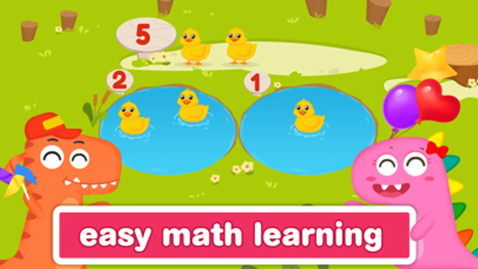 For kids 1-5 to learn simple mathematics, exercise logical thinking, develop math sense and practice memory. This app contains 11 mini games. Learn with cute dino brother and sister. Learn shapes, colors, numbers, fractions, counts, sorting, categories, comparing, easy math questions, supermarket shopping, money sense etc.