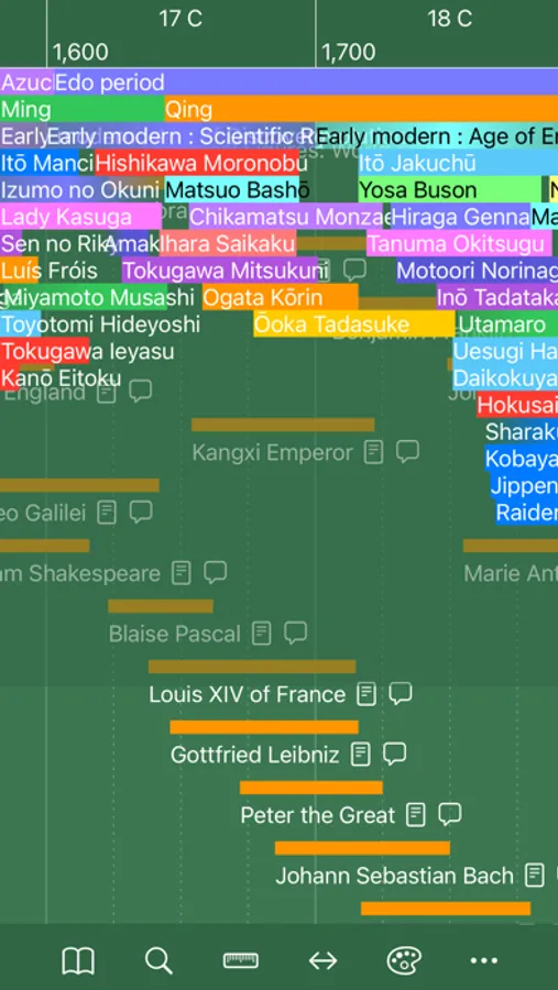 You can display various informations with time attributes unit of year side by side, regardless of a specific category such as Japanese history or world history.