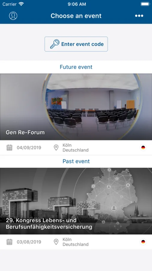The Gen-Re Events App is the central application for internal and external events of Gen Re.