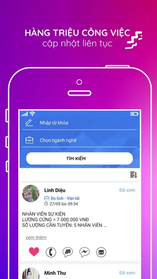 Tìm kiếm công việc phù hợp rất dễ dàng, tin cậy và hiệu quả, mọi lúc, mọi nơi.
