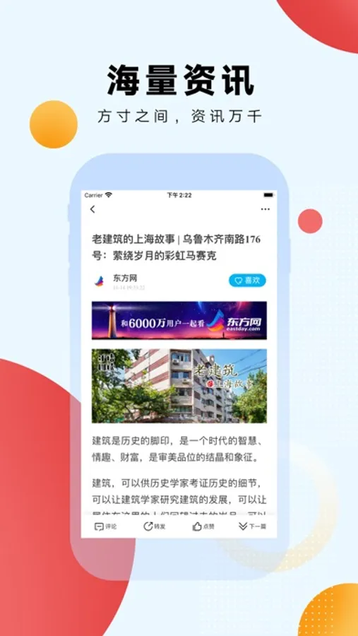 东方新闻是中国互联网百强企业东方网推出的一款聚合类新闻资讯平台,与其他新闻资讯客户端不同点在于我们更关心用户对新闻阅读的本质需求:知悉更快、权威可信、阅读性强、制作精良,相比流量和眼球我们更看重每一次阅读是否给你带来有用的信息或实在的服务。如果你是对时事敏感,对“开局党”“钓鱼党”特别反感,对冗余资讯、对人为造成信息闭塞等深恶痛绝,建议您花点时间体验一下空气不一样的东方新闻。