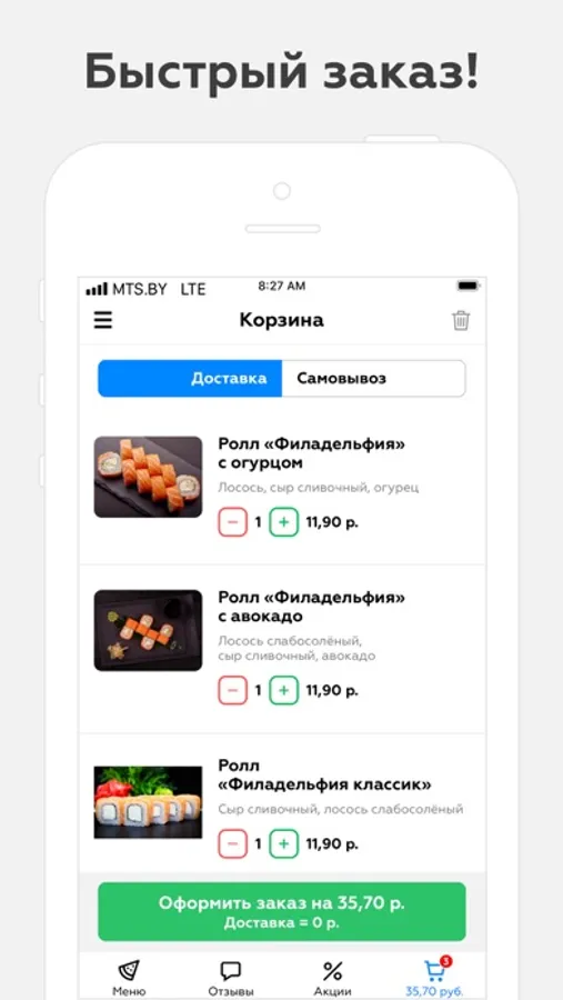 — Быстрый заказ с мгновенным подтверждением через приложение.
