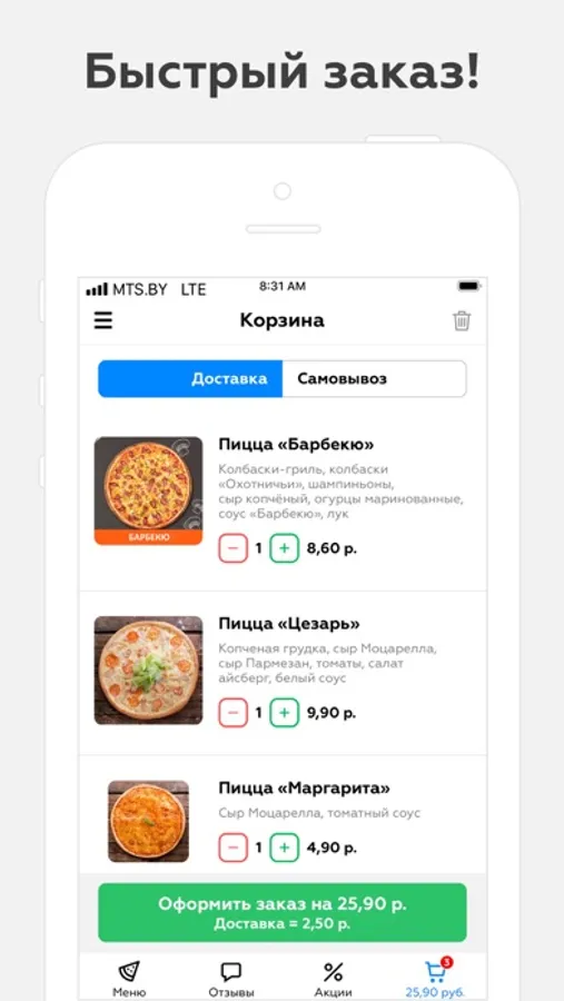— Быстрый заказ с мгновенным подтверждением через приложение.