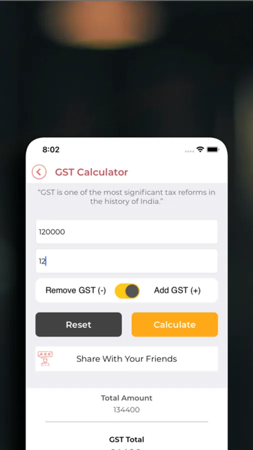 ● Easy GST Calculator feature that provides option to find taxes to be paid by adding or removing GST amount.