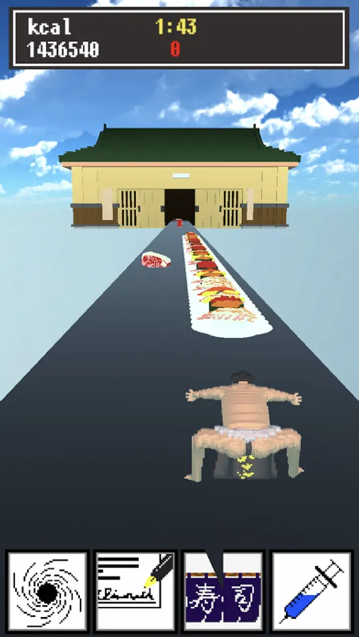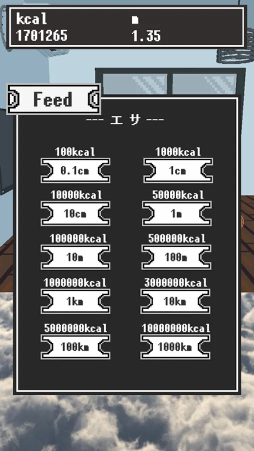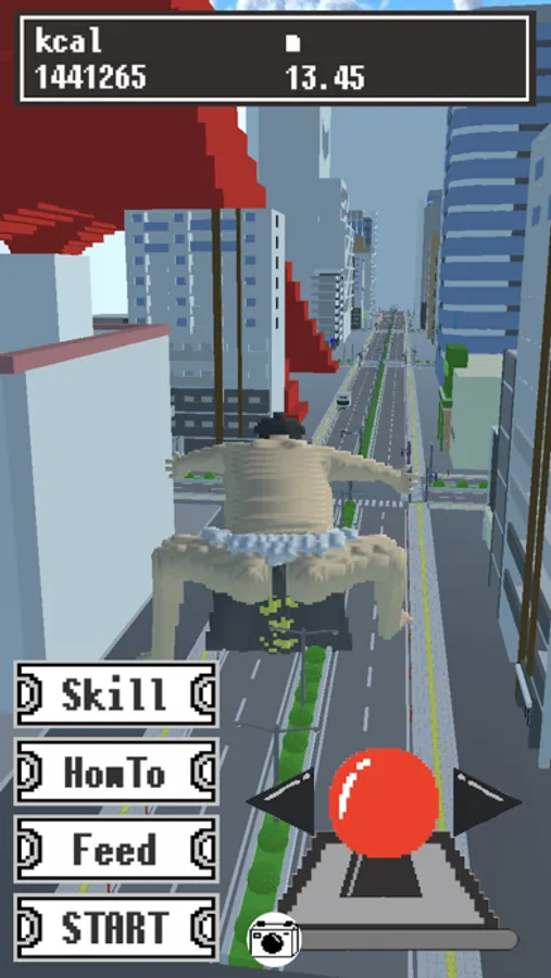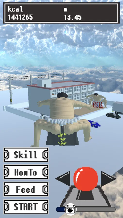 そこで力士にFEEDパネルで栄養を与えていくと、どんどん大きくなっていき、机より大きく家より大きくなっていきます。