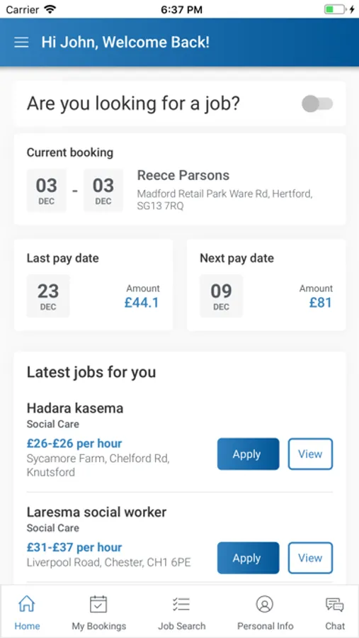 GCS UK is an app that allows candidates to view their recruitment profile with our business that includes compliance status, previous timesheets and payments made, timesheets due to be paid to them and new jobs they can apply for.