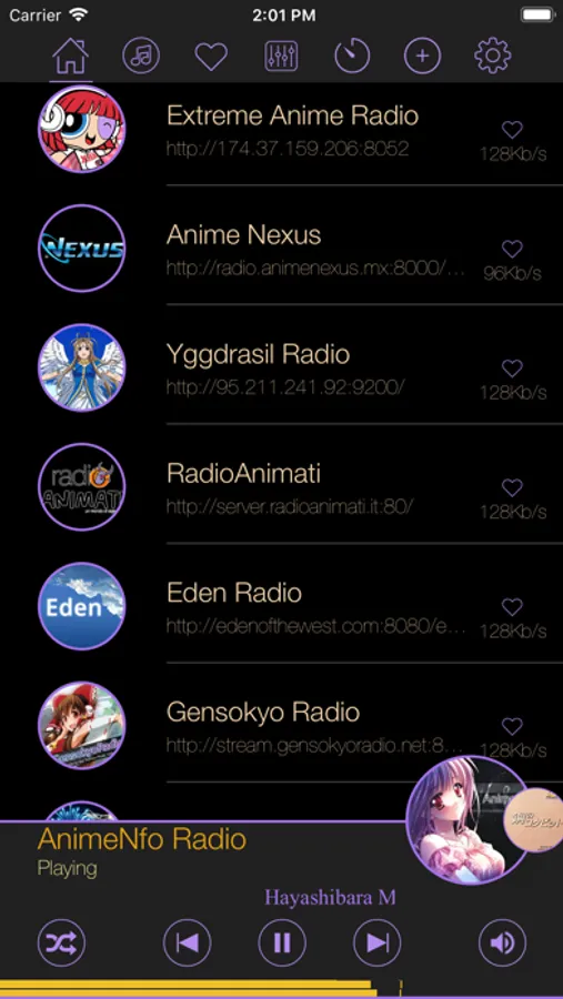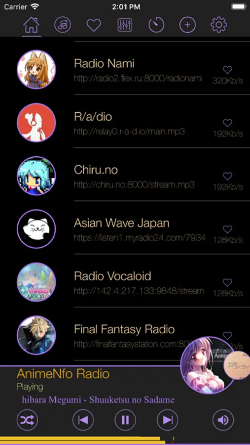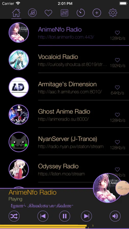 Listen a large selection of anime and Japan music stations, the songs of your favorite animes in one place. More than 85 radio stations to choose from.