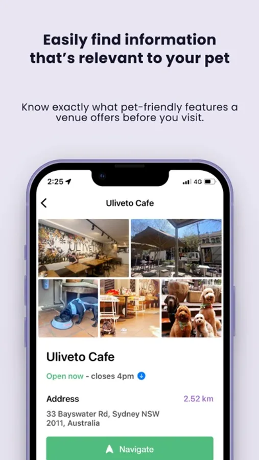 Take your pet with you everywhere you go! Whether you’re looking for a new groomer, puppuccinos or a fenced park for a playdate, easily discover verified pet-friendly locations on our Discover feature. With our pet-friendly highlights, you can see what amenities and features you and your pet can expect to find before you get there. Rate and review your favourite businesses and explore trendy cafes, restaurants and pubs the pet community are currently loving.