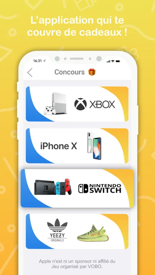 Apple n'est ni un sponsor ni affilié du Jeu organisé par VOBO.
