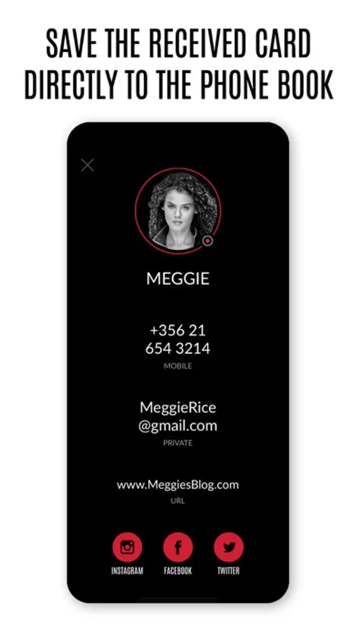 • 1 pre-set card for different purposes from more than 20 data, including social media addresses